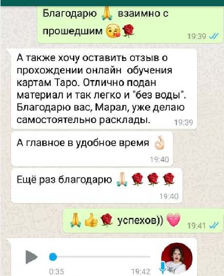 Меня зовут Марал Устенова. Я психолог- бакалавр, сексолог, консультирую по отношениям, сертифицированный Таролог профессионал, энерготерапевт. Занимаюсь Таро с 2014 года. Как я пришла в Таро? Интуитивно... всегда интересовала эзотерика и работа нашего подсознания. Наверное